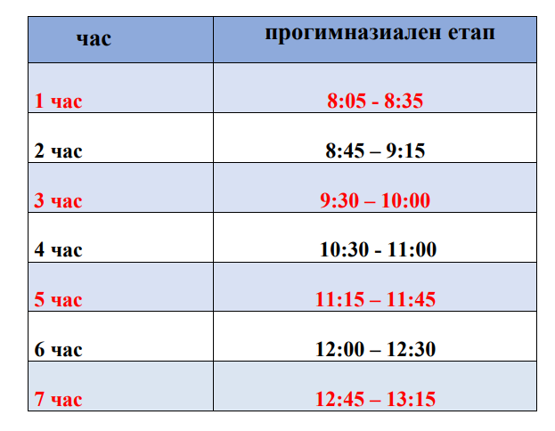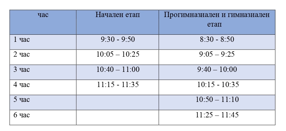 График на часовете в ОРЕС - гимназиален и прогимназиален етап за периода от 4.02.-17.03.2021 г.