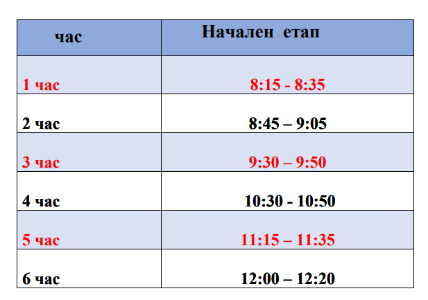 График на часовете за присъственото обучение на